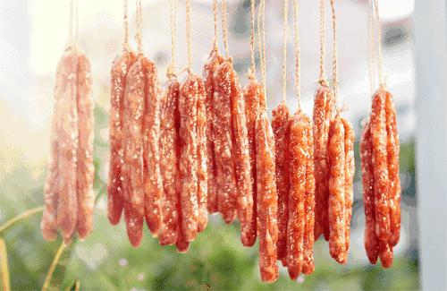 香肠的制作过程也相当讲究,首先要选择优质的肉料,然后进行腌制、填充、发酵、烟熏等工序。每一个环节都马虎不得,才能制作出口感鲜美、香气四溢的香肠。